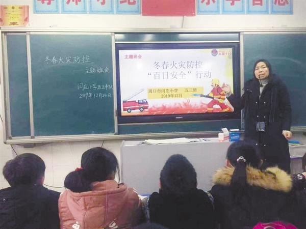 为了让孩子们能够度过一个健康、安全、文明、和谐的寒假,近日,周口闫庄小学根据川汇区教体局安排,利用主题班会、校园广播、校讯通、家长委员会群、致家长一封信等形式对学生及家长进行安全知识教育,指导督促孩子合理安排假期生活,保证孩子假期的安全。图为主题班会现场。通讯员 梅德强 摄