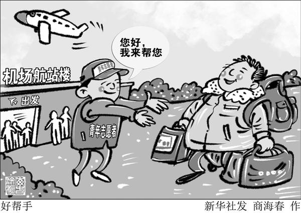 为尽力满足春运出行需求,四川航空将在成都双流国际机场T1航站楼内推出全流程“便捷出行”青年志愿者特色服务,为旅客提供移动值机、自助托运、无陪儿童保障等引导帮助。新华社发 商海春作