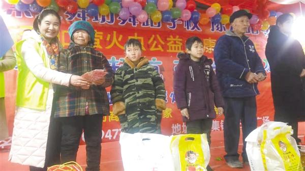 在活动现场,周口萤火虫公益志愿者为上述几个困难家庭送去现金4000元和慰问品。
