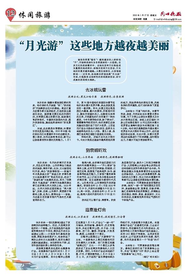 夜游去处:黑龙江哈尔滨 夜游特色:冰雪夜游