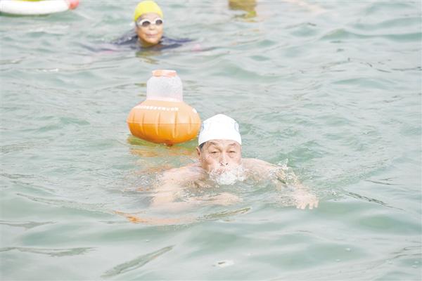 1月22日,游泳爱好者在广西南宁市邕江一桥上游江面畅游。
