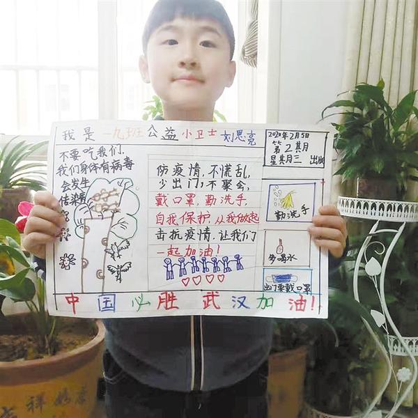 周口六一路小学近日布置了一项作业,要求学生设计一张防疫宣传小报,为武汉加油。该校学生用漫画的形式呼吁大家勤洗手、戴口罩、多喝水、多通风。记者 王晨 通讯员 李琨 摄