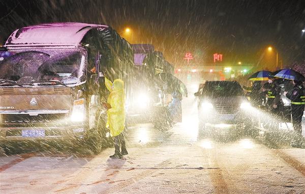 连日来,秦岭深处的陕西省洛南县风雪交加。在沪陕高速公路洛南县华阳站,联合防控新型冠状病毒感染的肺炎疫情的工作人员坚守岗位,24小时3班倒不间断,对进入辖区的车辆和人员进行新冠状病毒感染的疫情排查和往来登记。