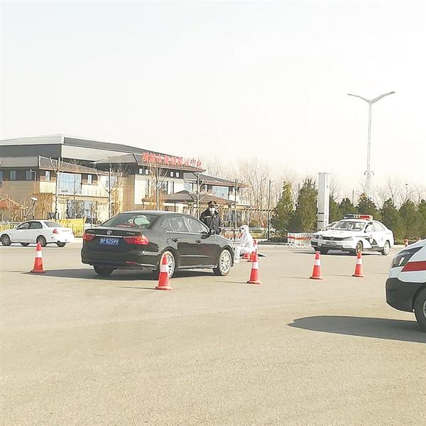 为做好疫情防控工作,控制疫情传播,减少人员流动,我市卫生、公安、社区等部门工作人员一直坚守在疫情防控一线,严格落实防控措施,控制新型冠状病毒感染的肺炎疫情蔓延态势。图为2月9日,项城市迎宾大道卡点工作人员正在劝返准备进入城区的车辆。