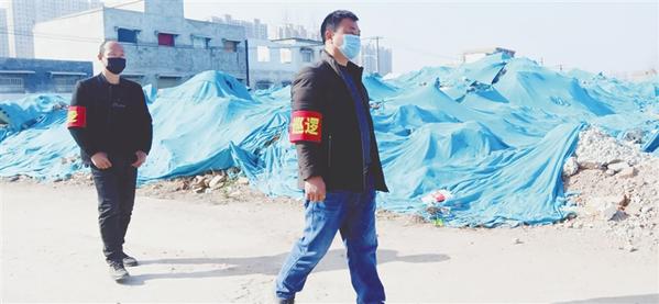 本报讯 2月10日,川汇区城北办事处后彭埠口社区韩庄村民李威和张辉搭档,正式开启一天的工作时间。他们的主要任务是劝导村民不要出门聚集,监督村民出门购物或者下地时佩戴口罩等。