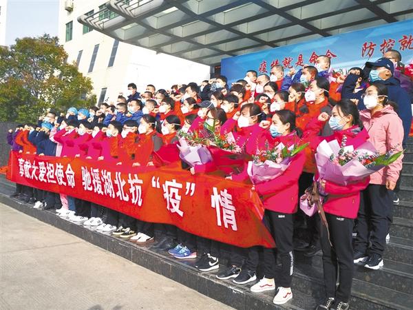 “我志愿加入周口市援鄂医疗队,服从命令,听从指挥,不怕牺牲、勇往直前,敬佑生命,甘于奉献。不负组织重托,不负人民期待,坚决打赢疫情防控阻击战!请周口人民放心!”明媚的阳光下,他们目光坚毅,神情从容地举起右手宣誓,铮铮誓言汇聚成众志成城、同舟共济阻击疫情的大美壮歌。