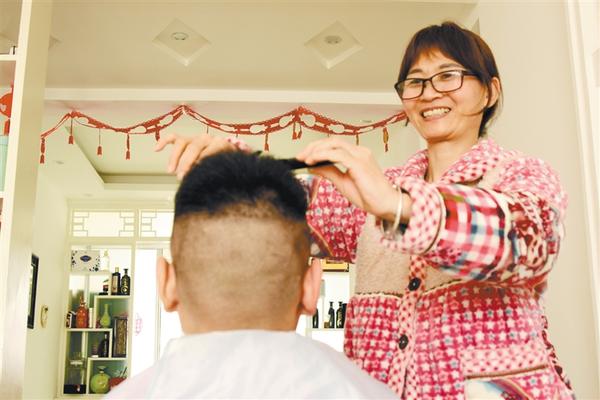 不过,龙抬头这一天,不少市民选择在家理发,尽管理发技术不高,但是在为家人理发的过程中也收获了快乐。记者 梁照曾 摄