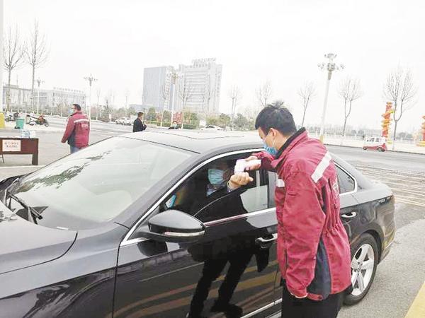 1月25日(农历大年初一),彭清接到通知:周口市疾病预防控制中心全员取消假期,立即返回岗位。按照分工,他被安排到市委、市政府大门口,负责进出人员的体温测量(如图)、登记等工作。20多天来,方便面、火腿肠成了他就餐的“标配”。几天前,因急着去上班,彭清一不小心摔倒在楼梯口。他当时感觉好像没有受伤,但到了下午,腰部就开始疼痛难忍。为了不耽误上班,他买来膏药贴在腰部,坚持工作。同事得知后都劝他休息,但彭清幽默地说:“不碍事,咱还年轻,坐着更疼,还是站着舒服些。”