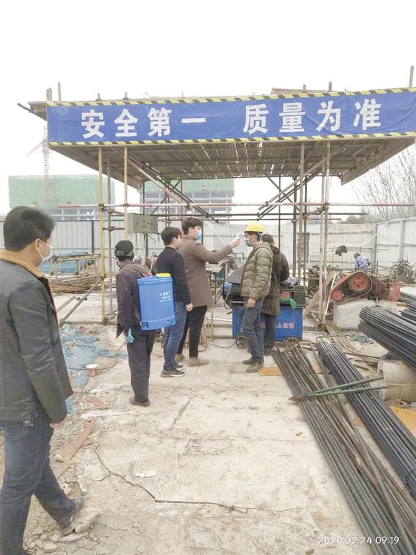 昌建控股周口区域公司第一时间响应政府号召,在严格做好疫情防护工作的前提下,成为周口房地产业第一个工地复工企业,并安全有序地逐步全面复工。从防疫小组人员组建及分工,到防疫物资储备;从佩戴口罩、统一测试体温,到来访登记服务,从台账记录到微信信息登记;从通道提示语,到单元门口、电梯轿厢防疫海报;防疫工作从细节处着手,坚持防疫工作不放松,坚持企业稳定健康复产。