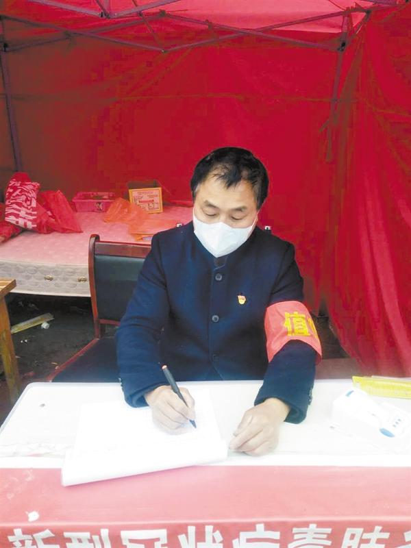 自从进住卡点担当抗疫重任后,李丙敬就成了一个大忙人,在值勤卡点,他认真登记人员出入信息、测量体温,对内防输入,对外防扩散,进村入户,摸排调查居住人员信息,不漏一人,并做好重点人员排查工作。他还和村干部一起,发动群众及时清运垃圾、整治人居环境,晚上利用广播,宣传教育村民配合防控防止病毒传染,做到不扎堆、不打牌、不聚集、不串门、佩戴口罩、勤洗手、居家隔离等。