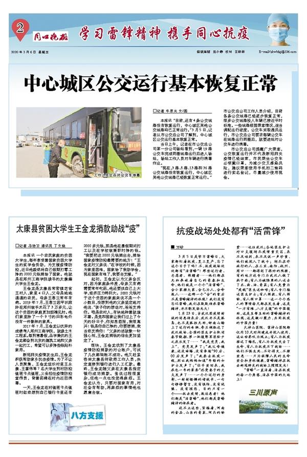 很快,王金龙找到了太康县疫情防控捐款的对公账户,可试了几次都转账不成功。他又赶紧咨询太康县财政局工作人员,决定直接到银行进行人工汇款。最终,王金龙随父亲在太康县指定银行成功捐款。虽说过程很复杂,但他一点也没觉得麻烦。王金龙认为,只要对国家有用,对社会有帮助,再麻烦的事情他也愿意去做。