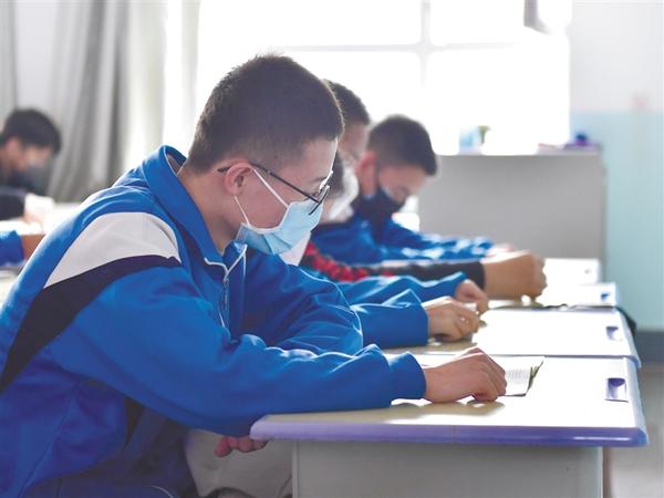 3月9日,在青海省海东市第二中学,高三学生在学习。