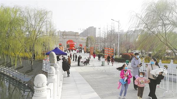 本报讯 3月10日,天气晴朗,暖意融融,关闭一个多月的周口公园开园迎客第二天,记者在周口公园看到,游客都戴着口罩,经登记、测温后依次入园,园内秩序井然。