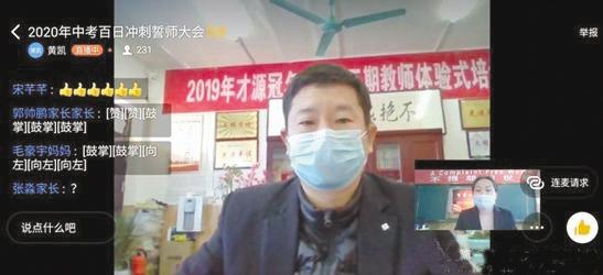 与此同时,县第二实验中学通过网络直播2020届百日誓师大会,全校师生及学生家长在线参与,共同见证这一庄严时刻。“中考的战鼓已经擂响,我们唯有以高昂的斗志、百倍的信心、坚定的意志、扎实的基础全身心冲刺中考,把家变成‘战场’,以优异的成绩向学校、家长和自己交一份满意答卷。”该校九年级学生郝妍妍说。