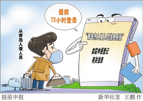 青岛市新冠肺炎疫情防控指挥办公室3月17日正式发布通告,计划来青返青的入境人员,由其亲友或其亲友告知本人提前72小时登录“青岛市入境人员信息系统”,如实申报登记有关信息。新华社发 王鹏 作