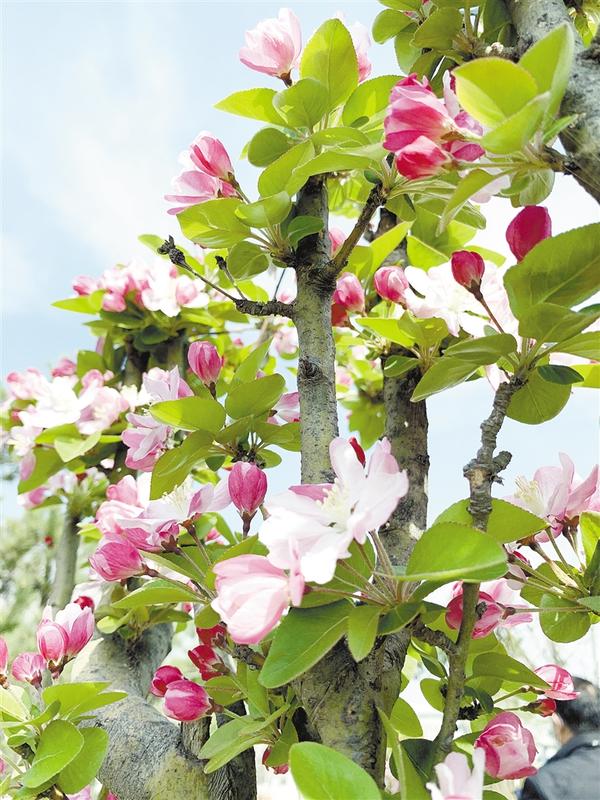 “春风先发苑中梅,樱杏桃梨次第开”。桃花、梅花、玉兰、樱花、海棠等十几种观花植物随春风一道,渐次登场。花朵一片、一簇、一坡、一树,惊艳乍现:雪白乳白的、深红浅红的、鹅黄金黄的,还有各色不一的粉、蓝、紫,好似有人在晾晒一匹匹云霞或彩帛。