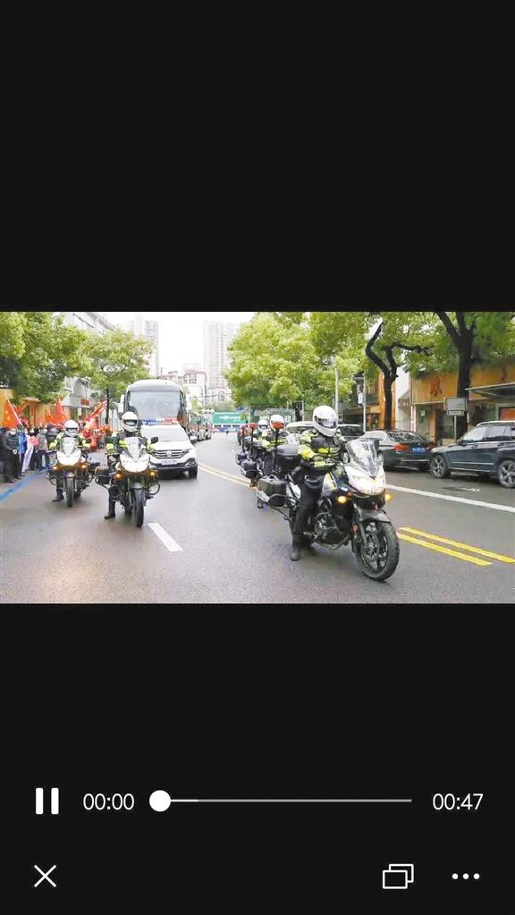 欢送仪式结束后,警车开道,河南援鄂医疗队乘大巴离开驻地前往机场。不少武汉市民依依不舍,挥动手中国旗,高喊“再见”,夹道欢送。