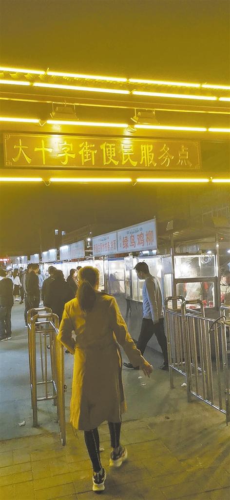 记者在中心城区大十字街路口看到不少结伴而来的消费者。“好久没有出去大吃一顿了,我要去大十字街吃吊炉烤翅、冷热面、杏仁茶、炒凉粉……”市民杨女士激动地说。