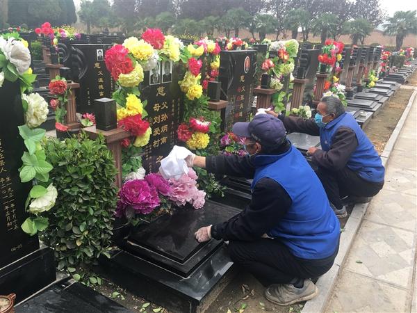 无独有偶,在同一时间,周口永安福陵园(以下简称永安福陵园)内工作人员进行完集体代祭后,走向墓地轻轻擦拭墓碑,代替市民完成因疫情影响而无法实现现场祭扫的心愿。“防疫不松懈,亲情不缺席。我们努力为市民提供免费代祭服务和个性化祭扫服务,用心做好‘孝心’和‘爱心’的传递者。”该陵园负责人说。