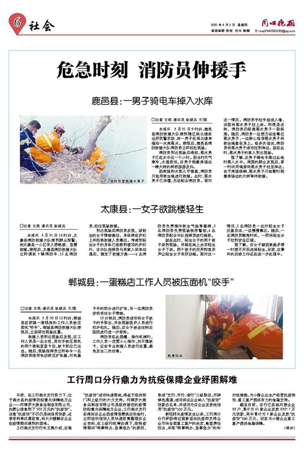 本报讯 3月31日16时许,太康县消防救援大队接到群众报警,称太康县一小区有人想跳楼,急需救援。接报后,太康县消防救援大队立即调派3辆消防车、12名消防员,赶往现场救援。