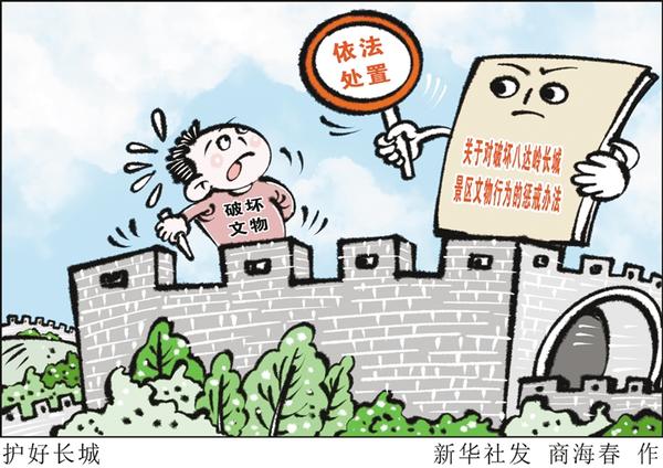 为加强长城文物保护工作,4月6日起,北京市延庆区八达岭特区办事处依据相关法律法规制定的《关于对破坏八达岭长城景区文物行为的惩戒办法》正式实施。