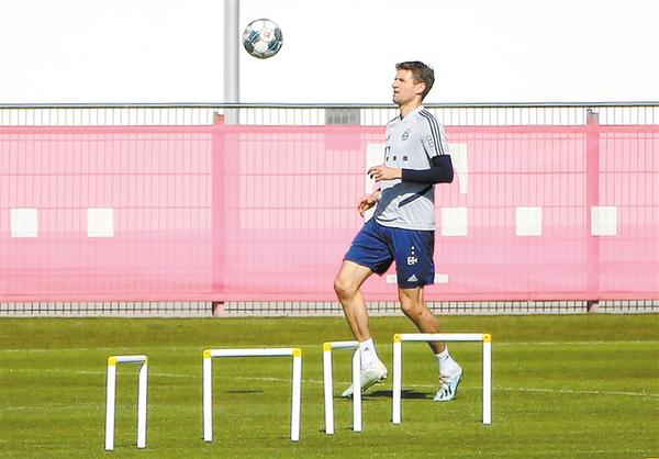 图为当日拜仁慕尼黑队球员穆勒在训练中。