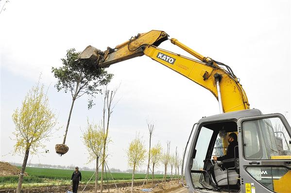 4月8日上午,商水县张庄乡技术人员在田间道路旁植树。入春以来,商水县抓住春季植树的大好时机,采取机械、人工相结合的方式开展植树活动,提升植树科技含量,确保新树成活率。
