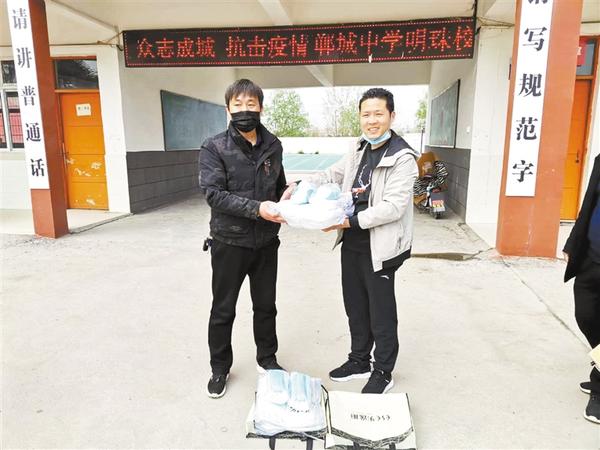 韩齐飞是郸城县城郊乡陆庄行政村小杨庄人,在郑州开办了一家服装厂。想到疫情期间,防疫物资对于学校尤为重要,韩齐飞这次回老家前,特意托朋友买了400只口罩和20套防护服。