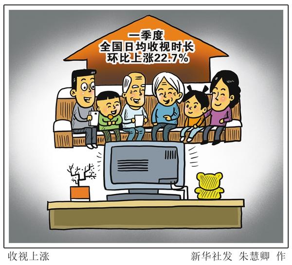据“中国视听大数据”统计,今年第一季度相较去年第四季度全国有线电视和网络电视用户日均收视总时长上涨22.7%,每日户均收视时长增长半小时。新华社发 朱慧卿 作
