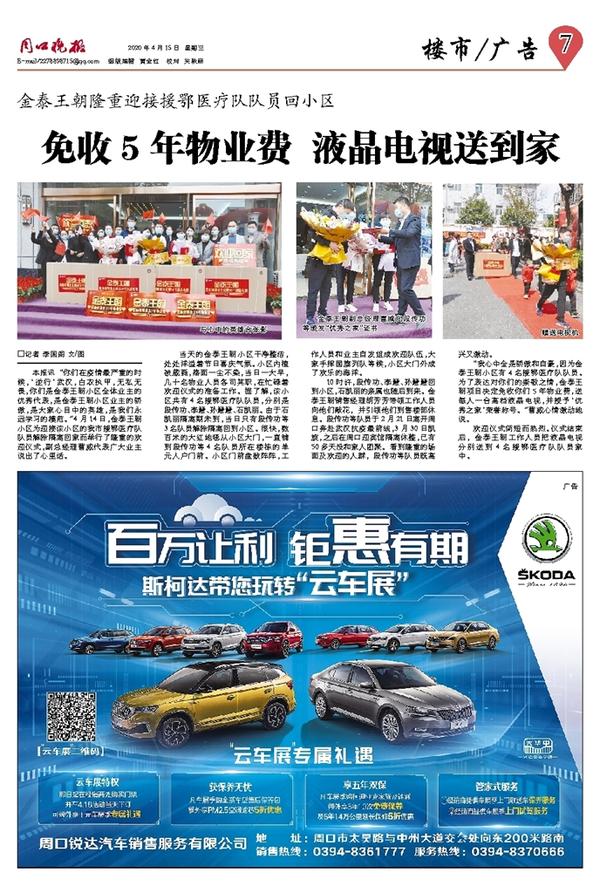 “我心中全是骄傲和自豪,因为金泰王朝小区有4名援鄂医疗队队员。为了表达对你们的崇敬之情,金泰王朝项目决定免收你们5年物业费,送每人一台高档液晶电视,并授予‘优秀之家’荣誉称号。”曹威心情激动地说。
