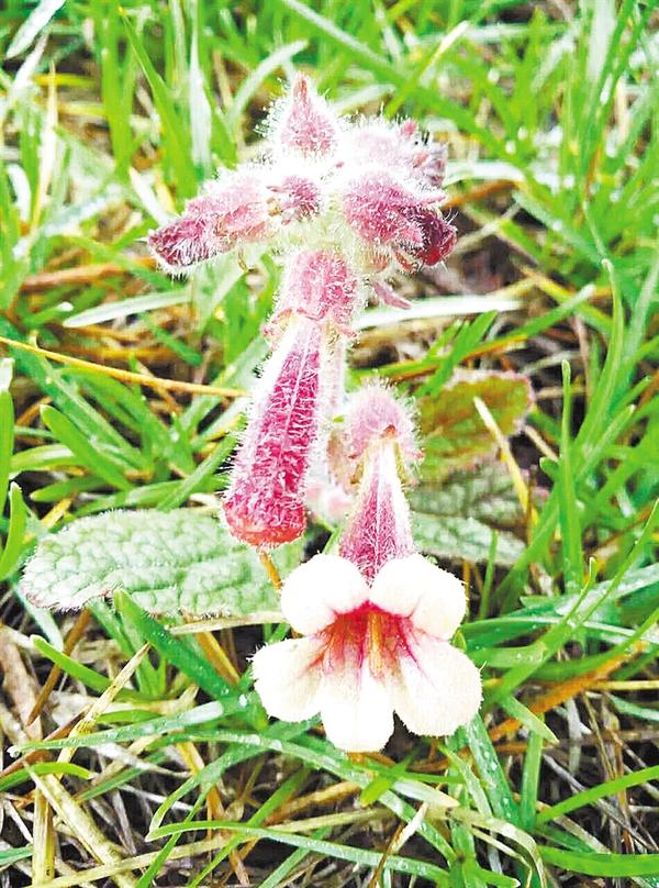 经过雨水洗礼的地黄,会给人另一种洗去暗淡的惊艳:暗紫红在雨水的浸润下变得清亮起来,花瓣透着淡淡的接近白色的粉或黄。偶有几个大水滴在花朵上悬挂,风一动就会滑落的样子。更有趣的是花朵下部极其细微的小绒毛上,挂着更细微的小水滴,让整个花朵都显得那么有光。去除暗淡之后的地黄花,让人很容易就看到它的芯,花瓣包裹着的黄色的花蕊。