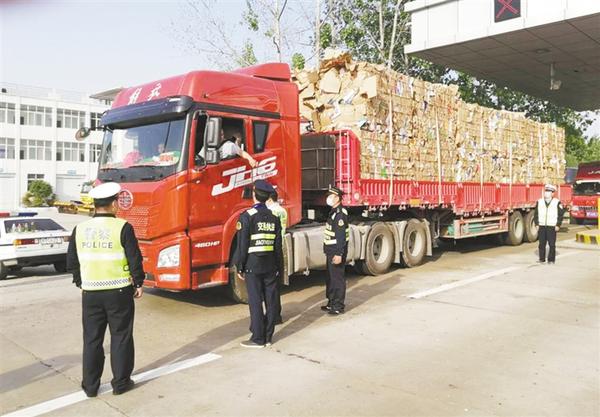 4月17日,市公安局交通管理支队高速四大队、七大队和市交通运输局执法处高速一大队的执法人员,在安罗高速周口西站、盐洛高速太康站进行联合执法检查。为做好高速公路交通安全保障和事故预防工作,全省高速公路交通安全整治“百日行动” 于当日正式启动。我市认真落实相关要求,在辖区各条高速公路收费站开展执法检查,及时消除安全隐患,筑牢安全出行防线,为战胜疫情和推动经济社会发展加油助力。 记者 孙安平 摄