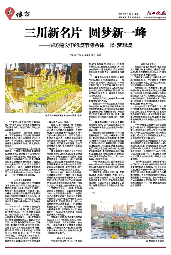 2019年4月,一峰成功摘得位于中心城区八一大道与文昌大道交会处的“黄金”地块,一峰·梦想城在此诞生。据介绍,该项目对周口未来商业、人居具有里程碑意义。一峰·梦想城作为一峰集团的旗舰作品,整体斥资20亿元。该项目整体建筑面积达45万平方米,集成都太古里、福州三坊七巷、上海汤臣一品等商业建筑设计精髓,规划有12万平方米高端住宅、10万平方米大型购物中心、2.6万平方米Dpark街区、3万平方米5A商务空间、3万平方米亲子娱乐空间。该项目仅大型购物中心体量就相当于中州大道原一峰生活广场的4倍多。