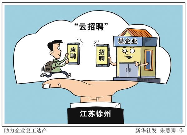 近日,位于江苏省徐州市的淮海人力资源服务产业园持续举办“云招聘”活动,线下组织人力资源服务机构,通过举办互联网岗位匹配对接会,实时连线有用工需求的企业,帮助解决招工问题,助力复工达产。新华社发 朱慧卿 作