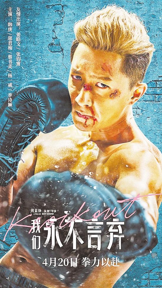 在《我们永不言弃》中,韩庚扮演因意外入狱6年的前“拳王”,在发现年幼的女儿患上白血病后,以36岁高龄重返拳坛以激励女儿与病魔斗争……该片由香港金像奖导演周显扬监制执导,剧组专门邀请了3位专业拳击教练对主演韩庚进行了半年的“地狱式”训练。