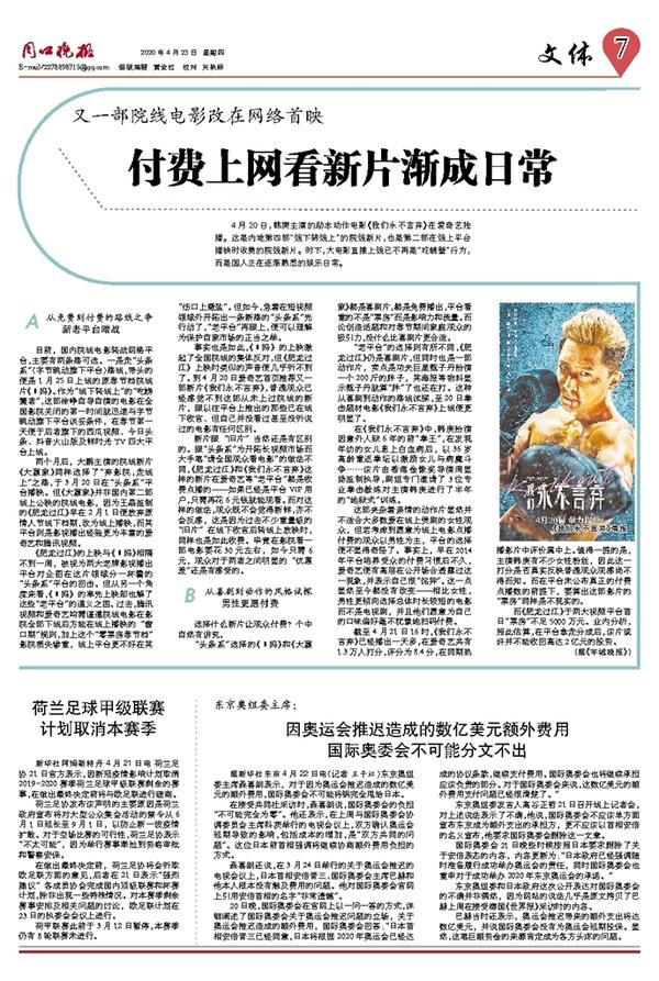 4月20日,韩庚主演的励志动作电影《我们永不言弃》在爱奇艺独播。这是内地第四部“线下转线上”的院线新片,也是第二部在线上平台播映时收费的院线新片。时下,大电影直接上线已不再是“吃螃蟹”行为,而是国人正在逐渐熟悉的娱乐日常。