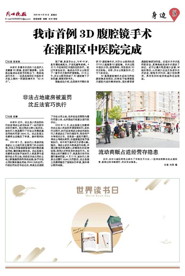 本报讯 身着手术衣的3名医护人员戴着3D眼镜,紧紧盯着屏幕。主治医生崔成品在助手的配合下,熟练地进行手术……这是在淮阳区中医院手术室上演的一部腹腔镜手术“3D大片”。