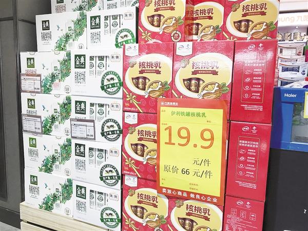 4月21日下午,针对我市部分牛奶价格“跳水”,记者对中心城区多家超市、便利店和副食店进行了走访。“真的是便宜不少,我平时买的蒙牛无菌枕纯牛奶要36元,今天只要29.9元。”正在逛超市的市民张女士说,“最近不是都说喝牛奶好,我就趁着低价多买了两箱。”记者在该超市看到,原价66元一箱的伊利核桃乳,现价19.9元;原价69元的纯甄酸牛奶,现价39.9元……