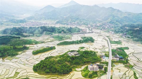 春日里,无人机镜头下的广西柳州市三江侗族自治县风景如画。 新华社记者 张爱林 摄