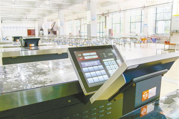 记者在该校餐厅看到,学生每人间隔一米排队取餐,取餐后,学生迅速把托盘放在结算台前,“智盘结算”直接结算,不需要人工收费。“这是我们学校去年5月份引进的‘智盘结算’系统,实现了自动结算,节省人工,方便快捷。该系统的使用,缩短了学生排队时间,确保学生无接触就餐。”该校后勤相关负责人介绍。