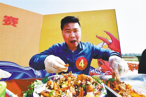 4月28日,在河南省濮阳市范县龙王庄镇龙东小龙虾基地,参赛选手在品尝小龙虾。当日,河南省濮阳市范县首届小龙虾大赛在范县龙王庄镇举行。大赛通过“现场直播带货”的方式,助推范县小龙虾产业发展。