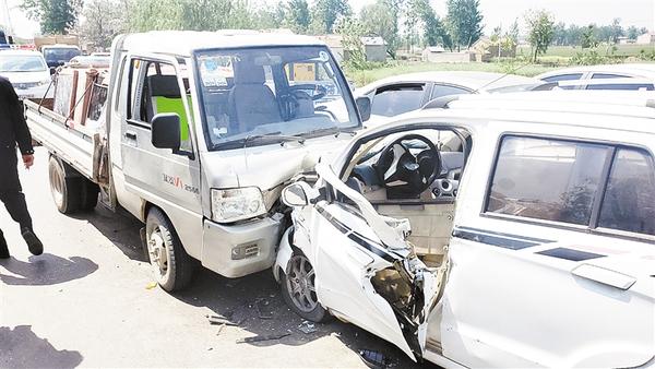 本报讯 4月29日10时许,淮阳区半坡店村附近公路上发生一起车祸,一辆老年代步车和一辆小货车相撞,老年代步车驾驶室严重变形,俩司机均受伤。接到报警后,周口市消防救援支队淮阳区大队立即前往救援。