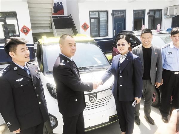 “得知周口市公安局城北分局治安大队警务用车紧张后,我特地捐赠了4辆新能源汽车。”周口宏源实业集团有限公司副总裁刘小芳说,“此次捐赠的4辆新能源汽车个头小,便于停放,非常适合治安巡逻。”