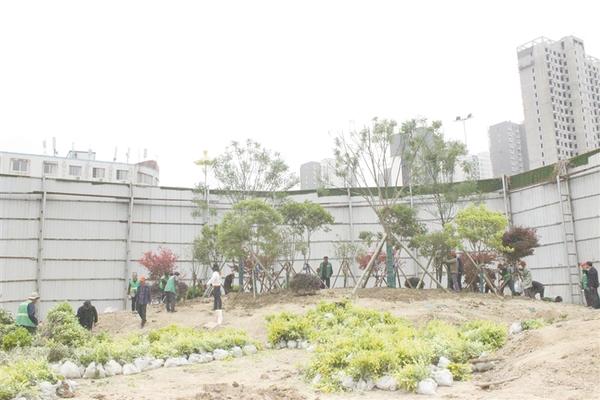 5月10日,记者在位于中心城区七一路与大庆路交叉口的新建游园现场看到,园林工人们分工有序,忙而不乱,挖填土方、栽植、修剪,忙得不亦乐乎。为早日完成绿化任务,市园林处干部职工放弃“五一”假期,全力投入游园建设中去。“这个游园占地面积2600平方米,于4月23日进场施工,相继完成杂物清除、渣土清理、土方回填、微地形营造、绿化种植等工作。”施工现场负责人介绍。