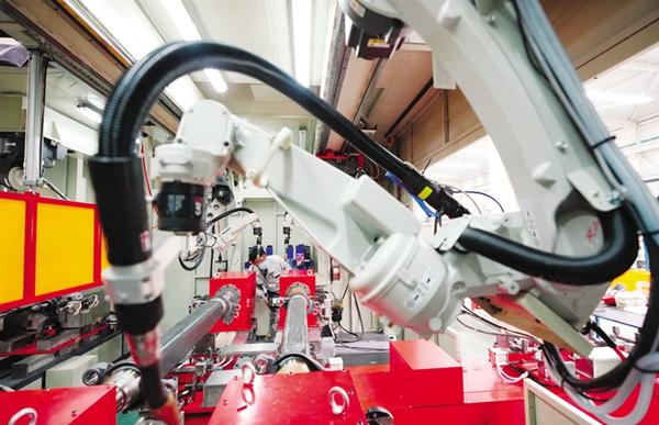 5月18日,工人在唐山国家高新技术产业开发区唐山开元自动焊接装备有限公司调试一款焊接机器人系统。 近年来,河北省唐山国家高新技术产业开发区机器人产业基地的企业不断加大科技投入和创新研发力度,拓展机器人应用领域,提高产能满足市场需求。据统计,今年1至4月份,唐山机器人产业主营业务收入增加值同比增长14.5%。新华社记者 杨世尧 摄