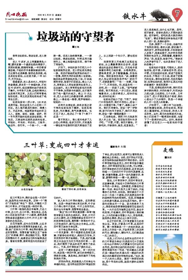 但是,人们为什么会把长出四片叶子的三叶草视为幸运?只是因为它十万里挑一的与众不同吗?人们愿意为它付出时间去寻找,是对特立独行的向往吗?这让我想到周国平的一句话:“世间最动人的爱仅是一颗独行的灵魂与另一颗独行的灵魂之间的最深切的呼唤和应答。”也许,每一个人的内心深处,都有一种深切的孤独,那个寻找的过程,就是对爱的应答和向往。