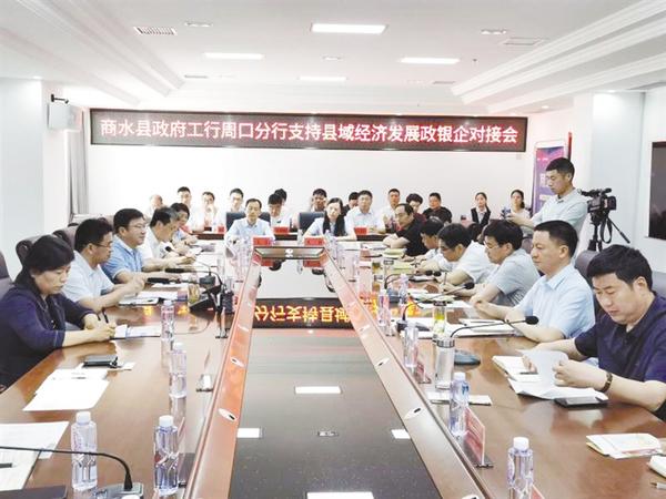 5月28日 ,工行周口分行与商水县政府举办的支持县域经济发展政银企对接会如期举行。在对接会上,与会各方交流政银企互利多赢的方法、路径和措施。此外,工行周口分行进行重点产品宣讲。