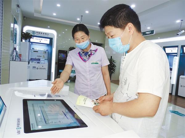 近日,农行周口分行工作人员积极向群众宣传金融知识,讲解理财的途径和方法,为客户普及金融基本知识,提升金融素养,尽全力为客户提供高效、优质、便捷的金融服务。图为近日农行西城支行工作人员向客户介绍理财产品。