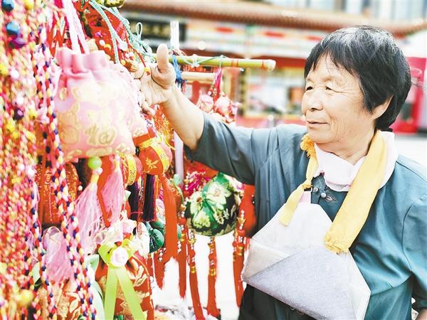 端午节临近,在中心城区的大街小巷,各种色彩鲜艳、造型别致、做工精美的手工香包纷纷亮相,吸引众多市民选购。