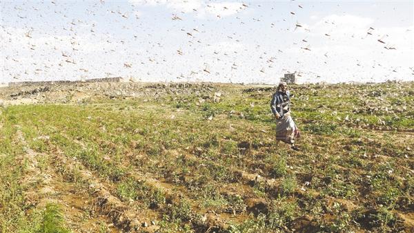 近日,也门西南部扎马尔省遭受蝗灾侵袭。新华社发